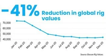 A motivator for moving rigs out of the market is their value. Bassoe showed what happened to rig values over the course of 2020. They estimate that the entire offshore rig fleet value dropped from about $73 billion last January to only about $43 billion at year-end. Interestingly in their chart, we see an uptick in the fleet value in December from the lows seen in September to November. It is difficult to attribute that uptick to anything other than initial reactions to a strengthening of oil prices and expectations for a demand recovery building throughout 2021. Such a scenario will drive oil prices higher and stimulate more demand for offshore drilling. It is the prospect of rigs returning to work that influences their values, as there is little use for them other than drilling wells. While this is good news, the media will continue to focus on the extreme situations, of which there are many. One report was about a 10-year-old rig that cost $600 million to build that was recently sold for scrap at a $6 million figure. This resembles the last major offshore drilling bust associated with the 1985 oil price collapse. At that time, drilling rigs were sold by the pound, i.e., the value of the pounds of cutup steel in the scrap market. The above figure is likely reflective of that condition today, but we understand the ship and rig breakup yards are finding scrap steel prices depressed due to oversupply. That doesn’t help rig owners in reaching decisions to scrap rigs.