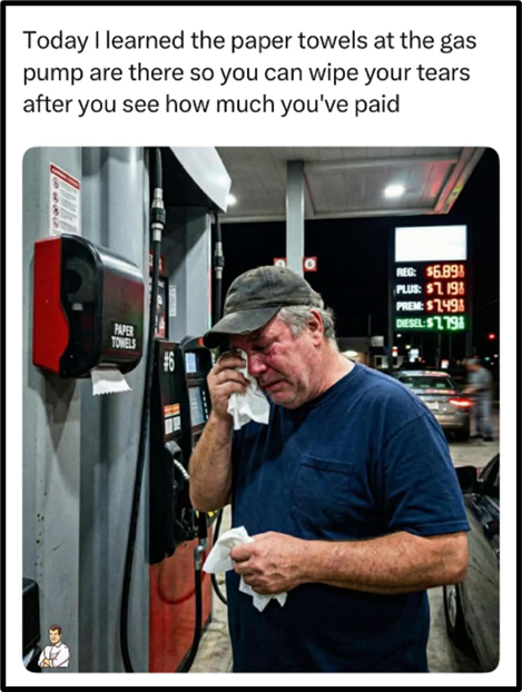Highlight. At the TIPRO meeting, one of the most entertaining and informative “presentations” was from the father and son team of Scott and Bryan Sheffield. You understand better the people who make up our industry. I had always made it required reading for those who work for me to read “The Big Rich,” which I think is the best history of our industry, spotlighting the people who shaped the oil industry. This felt like another chapter of the same book. The persistence and confidence, the optimism and lack of cynicism, the intelligence and determination are what have made our industry different from many others, and these two gentlemen gave a very good view that our industry continues to be shaped by the people in it. My bottom line for our three man panel? If we don’t open the Strait soon, a global recession is a certainty.