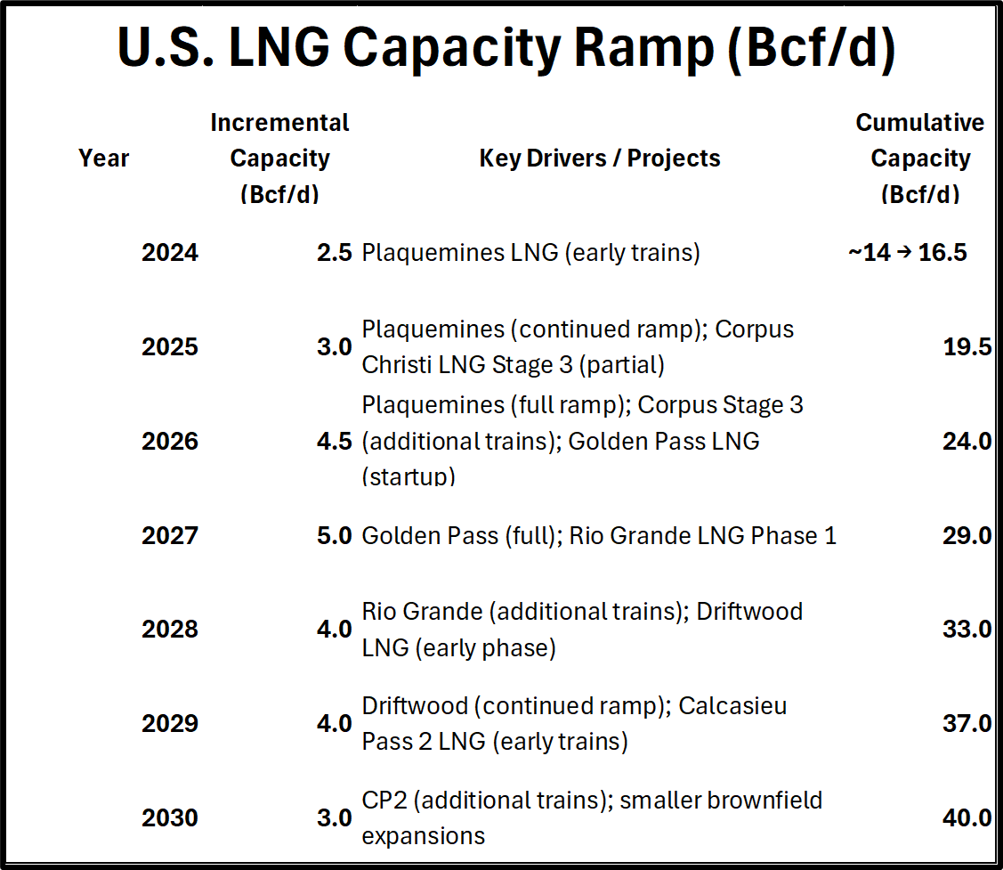 Increased throughput at these LNG facilities and the ones under construction are accelerating their timelines as much as possible. There is line of sight to 40 Bcf per day of LNG export capacity by 2031. We were at 16.5 Bcf per day at the end of 2024, and 19.5 Bcf per day at the end of last year.