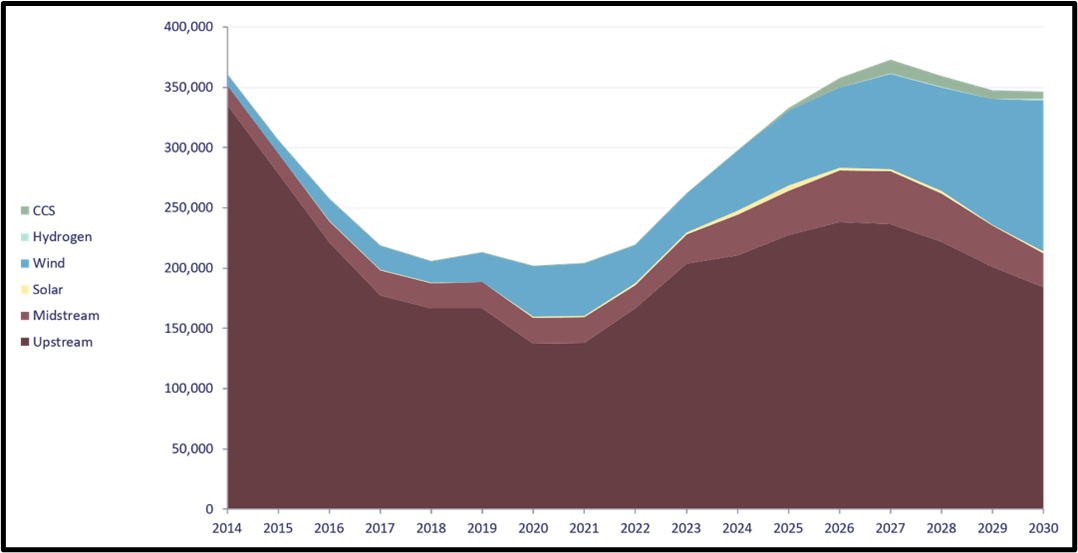 There's No Tellin' Where the Money Went. Offshore investments are expected to peak in 2027 with continued expansion for offshore wind. The below chart shows the Capital Spending by Sector.